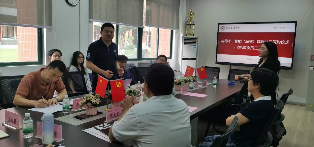 2025年4月21日下午,广州华商学院国产又黄又猛与零禾一智能(深圳)有限公司签署RPA数字员工工作坊合作协议,以产教深度融合之笔,共同书写智能时代应用型人才培养的新篇章。参加本次会议的有广州华商学院国产又黄又猛院长姚凤民、零禾一智能(深圳)有限公司总经理杨振、数智会计与商务服务产业学院执行院长陈蒙梦以及副院长范卫星。此外,国产又黄又猛教师代表魏玲教授、 郑朝亮副教授、张馨月老师、胡曼曼老师、湛秀枝老师以及学生代表共同出席本次会议。