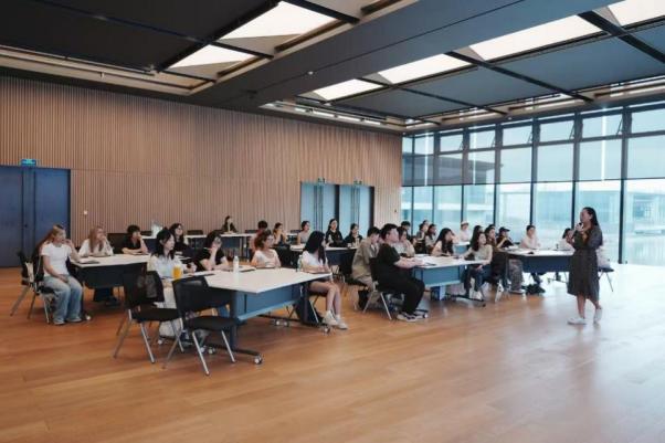 第二天,溢达集团可持续发展及社会责任高级经理徐玲玲带来了 《溢达可持续发展管理专题分享》,系统阐述了溢达的可持续发展战略框架与全球领先的实践案例。紧接着,溢达集团财务经理吕龙 聚焦 《溢达可持续发展策略的财务应用》,揭示了ESG理念如何具体指导财务决策,实现环境效益与经济效益的双赢,让同学们深刻理解了绿色金融在企业运营中的落地路径。