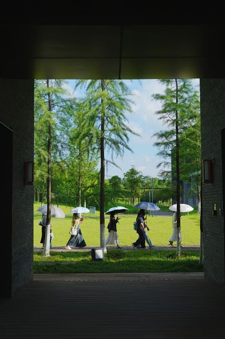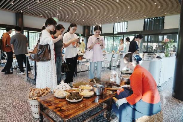 抵达桂林后,同学们首先入住溢达集团践行可持续发展理念的员工社区“龙光家园”。随后,大家走进宛如画卷的 “十如”可持续发展园林。在“十如大使”的专业讲解下,同学们细致观察了园区如何通过创新的建筑设计与材料应用,实现能源节约与环境保护的完美融合,亲身感受生态、生产、生活和谐共生的理想图景。