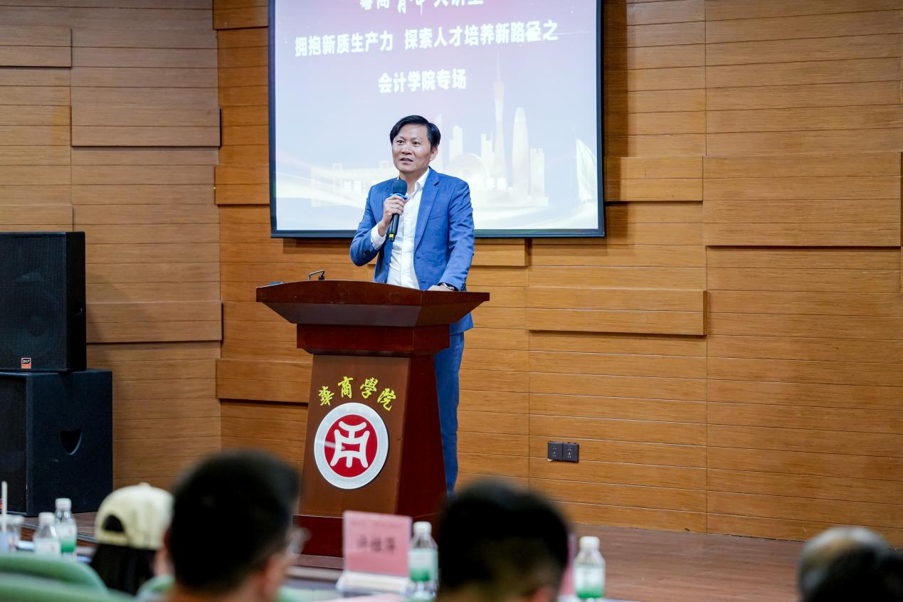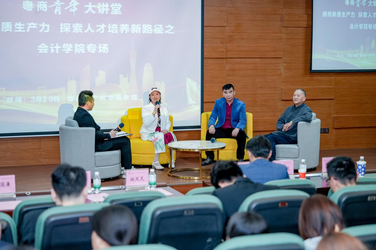 2025年3月20日下午,广州华商学院图书馆报告厅内座无虚席,由广州华商学院主办的《粤商青年大讲堂》之国产又黄又猛专场首期活动圆满落幕!本次活动以“拥抱新质生产力,探索人才培养新路径”为主题,汇聚三位跨界商业领袖与多位青年企业家们,为我校师生带来了一场融合科技、人文与商业智慧的深度对话。