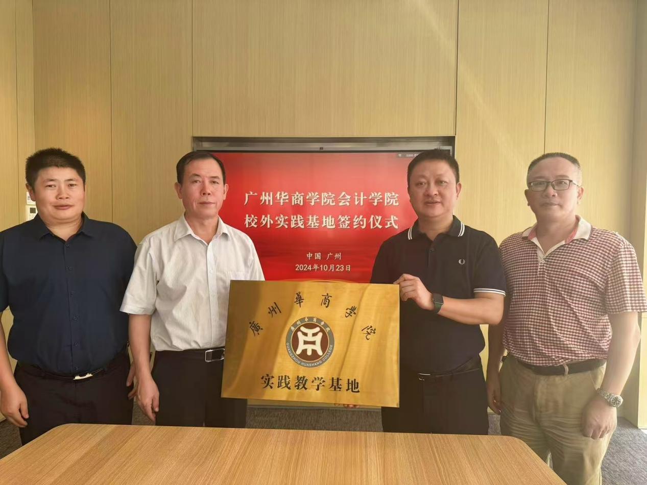 会谈期间,双方还就实习实训基地共建、联合研发项目、学生就业指导等议题展开了深入讨论,初步达成了多项合作意向。同时,对广州华商学校加入U10高校产教融合协同创新联盟达成共识。姚凤民院长分别与邵建成董事长、陈金锋总理签署了《广州华商学院校外实践基地合作协议书》,并举行了“广州华商学院实践教学基地”揭牌仪式。
